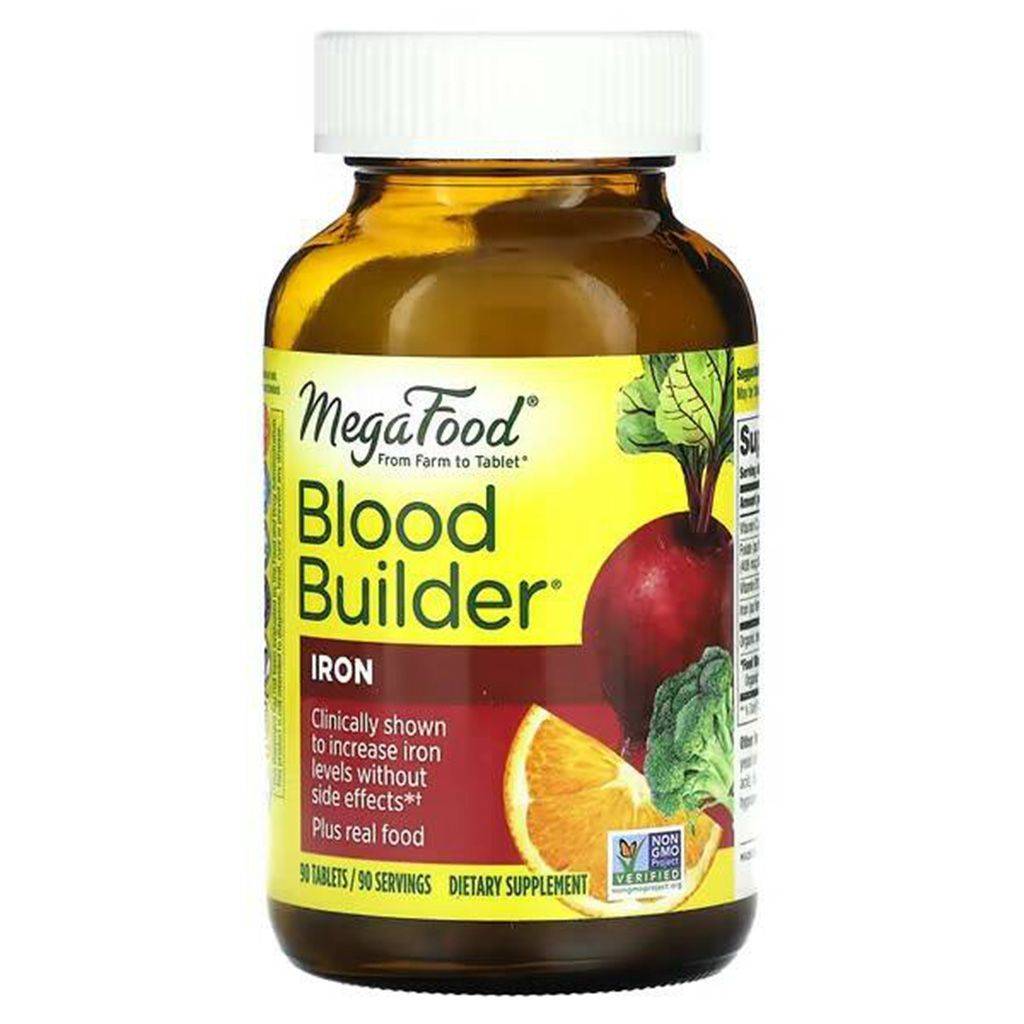 MegaFood Blood Builder is a dietary supplement designed to support healthy iron levels without causing nausea or constipation. Made with nourishing whole foods like beets and organic oranges, it combines naturally sourced ingredients with added nutrients to help boost energy and combat fatigue.