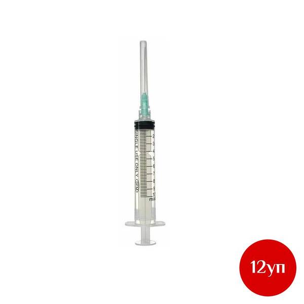 High-quality, sterile, single-use 10ml three-part syringes from SFM. Each syringe features a securely attached 21G (0.8x40mm) needle with a protective cap, pre-assembled in a blister pack for maximum sterility. These syringes utilize a reliable Luer Lock connection for secure needle attachment. The clear, indelible graduations are marked in 1ml increments for precise medication delivery. Sterilized with ethylene oxide, these syringes have a 5-year shelf life and are color-coded according to ISO standards. Packaged 100 syringes per box, with 12 boxes per case. Ideal for medical and pharmaceutical applications requiring accurate and safe injections.