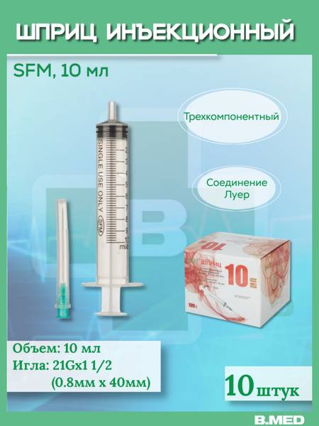 10ml syringe, 10ml medical syringe, SFM syringe, 21G needle, 1 1/2 inch needle, Luer lock syringe, sterile syringe, single-use syringe, disposable syringe, three-part syringe, medical supplies, injection syringe, intramuscular injection, subcutaneous injection, apyrogenic syringe, non-toxic syringe, ethylene oxide sterilization, individual packaging, blister pack, medical-grade polypropylene, high-quality needle, pain-free injection.