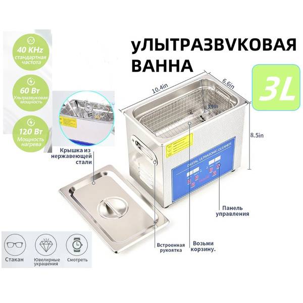 This premium 120W, 40kHz ultrasonic cleaner boasts a spacious 2.7-liter capacity, perfect for home, small business, or workshop use. Its powerful cleaning action effectively removes dirt, grease, and grime from a wide range of items, including jewelry, eyeglasses, tools, precision instruments, and industrial parts. The adjustable heating function optimizes cleaning performance for various materials, while the built-in timer ensures precise and safe operation. Experience superior cleaning results with this high-quality, durable ultrasonic cleaner—your efficient solution for maintaining cleanliness and extending the lifespan of your valuable possessions. Ideal for manicurists and professionals needing reliable sterilization of tools and equipment.