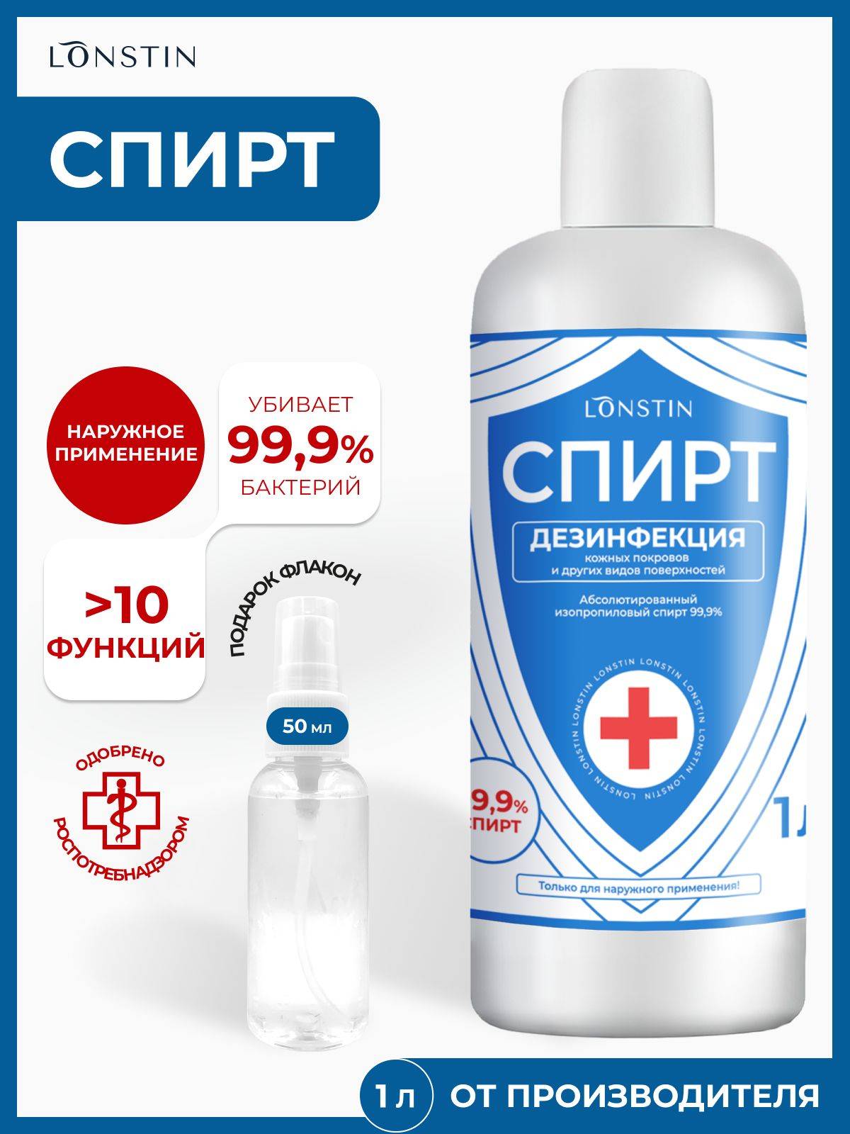 LONSTIN Isopropyl Alcohol 99.7% is an antiseptic solution formulated for surface and tool disinfection in medical, wellness, and cosmetic settings. The 1000 ml volume provides a ready-to-use option for routine cleaning and preparation tasks where rapid evaporation and residue-free results are desired.
