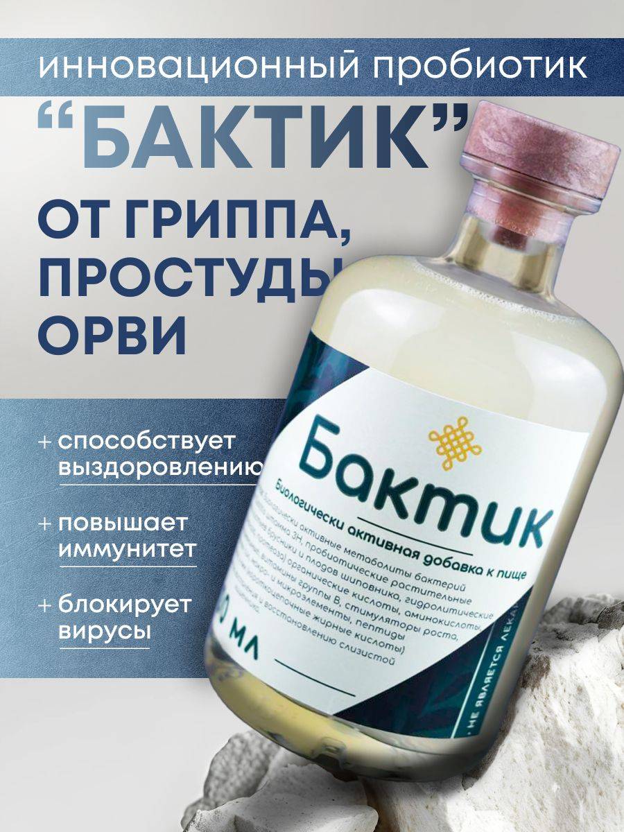 Baktik is a liquid probiotic dietary supplement designed to support the gastrointestinal tract of adults and children from three years of age. It contains metabolites of Bacillus subtilis 3H and plant‑based prebiotic extracts, packaged in a 500 ml bottle.