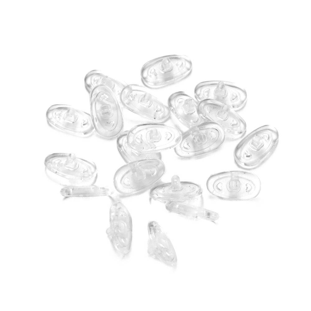 These soft, transparent silicone nose pads are designed to replace or adjust the nose rests on eyeglasses. Each pad measures approximately 12.5 mm by 7.4 mm, providing a comfortable fit for most frame styles.
