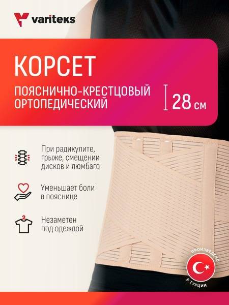 Description: Experience superior lumbar support with the Variteks Lumbar-Sacral Orthopedic Corset. This 28cm high corset provides reliable support and strengthening for the lower back, offering relief from conditions such as lumbago, sciatica, disc herniation, and disc displacement. Crafted with advanced technology and comfortable, breathable materials, this anatomically designed corset ensures comfortable, all-day wear. It maintains proper spinal alignment and reduces strain on the lumbar region. Adjustable straps allow for a personalized fit, maximizing effectiveness and comfort. The main and additional straps are conveniently joined at the front. Choose the Variteks corset for effective lower back pain management and proactive spinal health.