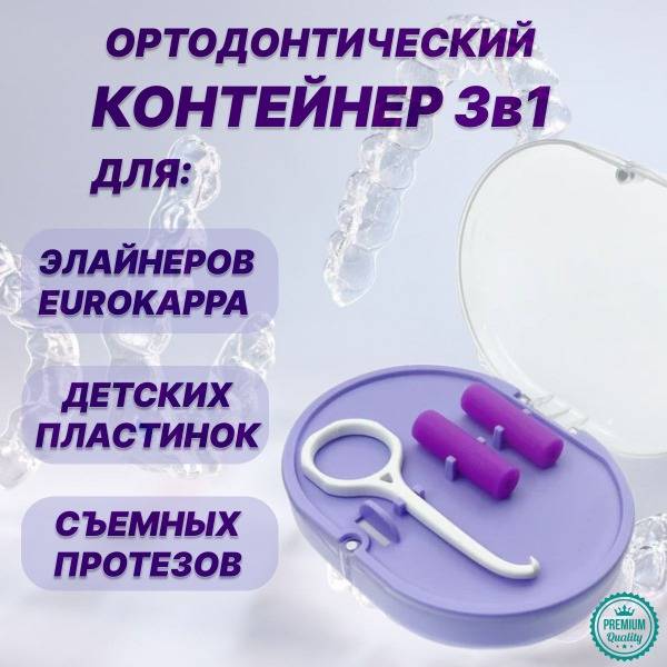 Maintain a dazzling smile on the go with this sophisticated 3-in-1 orthodontic case. Designed for effortless elegance, this purple case provides secure and stylish storage for your aligners, retainers, and removable prostheses. Crafted from premium materials, its compact design makes it the ideal travel companion.