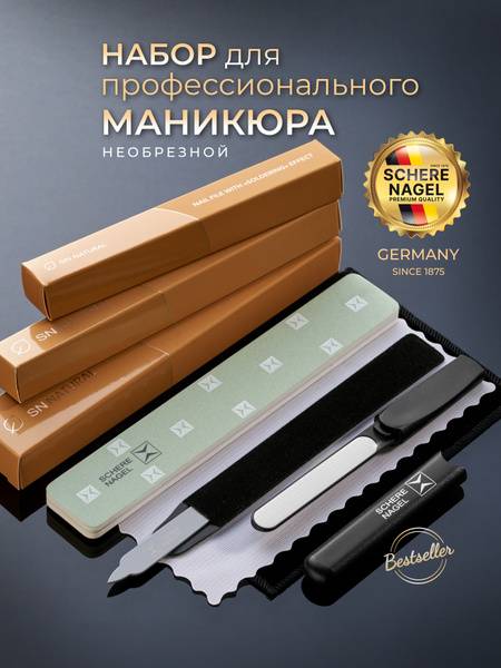The Schere Nagel manicure set offers a cumulative effect, slowing cuticle growth with each use. Its cleverly designed cuticle pusher allows for effortless filing in any direction without damaging the nail plate thanks to a recessed, millimeter-gap cutting edge. Lightweight and only 15 centimeters long, its flexibility allows for quick, efficient cuticle removal in just a few strokes. The patented diamond coating ensures gentle yet effective removal of cuticles and rough skin, targeting only dead skin cells without affecting living tissue – perfect even for sensitive skin. With proper care, the diamond coating will last a long time. (Avoid using on the nail plate itself; store in its case and clean with a soft brush).