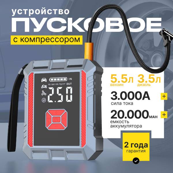 This versatile 3000A car jump starter boasts a powerful 20000mAh battery, ensuring reliable engine starts even in extreme conditions. Its integrated air compressor quickly inflates tires, a lifesaver on long journeys or during roadside emergencies. Beyond jump starting, this multi-functional device acts as a robust power bank, charging phones, tablets, and other gadgets. A bright built-in LED flashlight provides crucial illumination for roadside repairs or inspections. This all-in-one jump starter, power bank, and air compressor is the perfect companion for drivers who demand practicality and preparedness. Its high reliability and efficiency make it ideal for everything from cold-weather starts to charging devices far from power outlets. Be ready for anything – choose the ultimate roadside emergency solution.