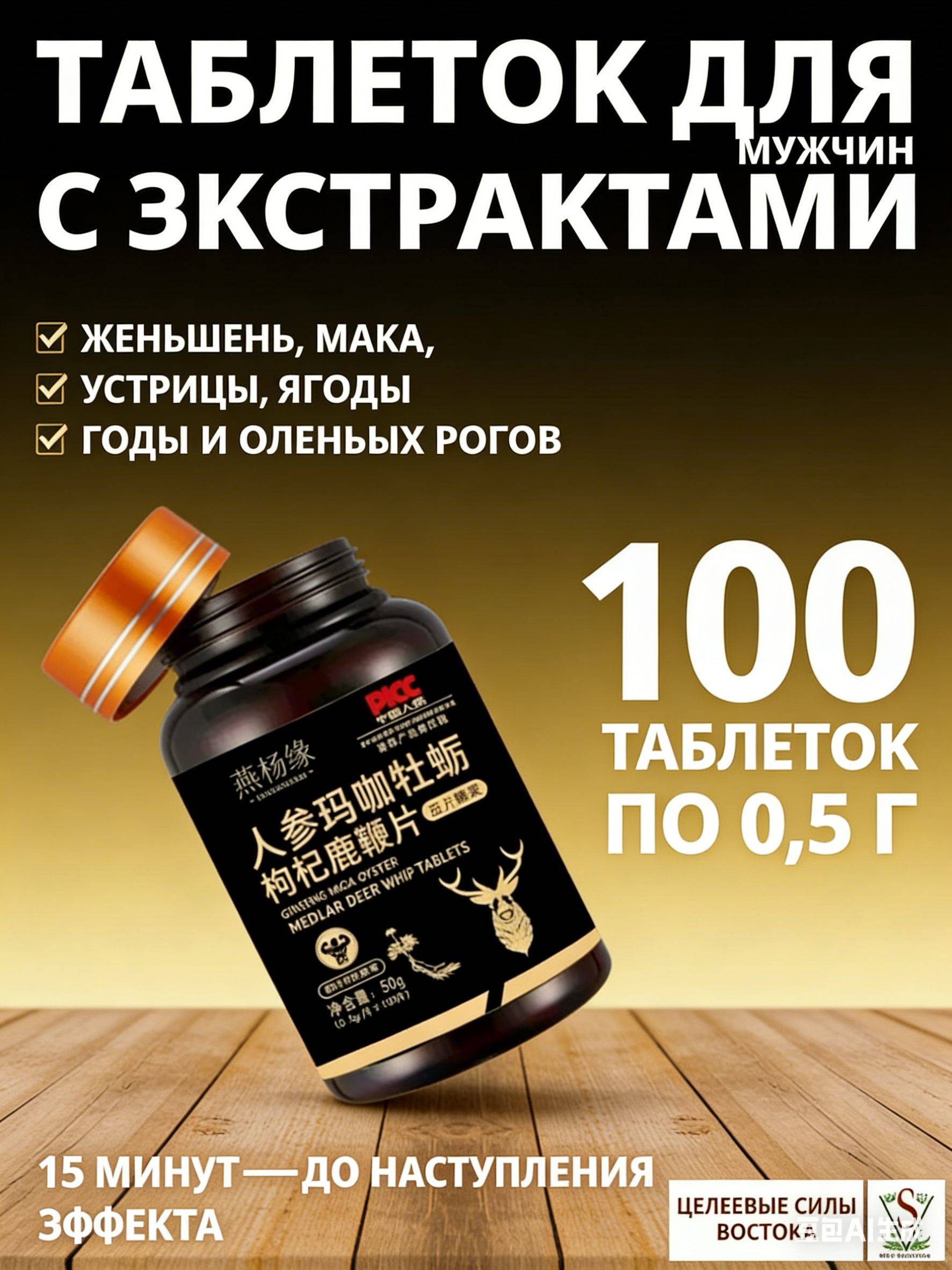 This natural supplement combines ginseng, maca, oyster extract, goji berries, and deer antler extract to support men's health, vitality, and immune function. Formulated with traditional herbal ingredients, it aims to enhance energy levels, metabolic balance, and overall well-being through a blend of plant-based compounds.