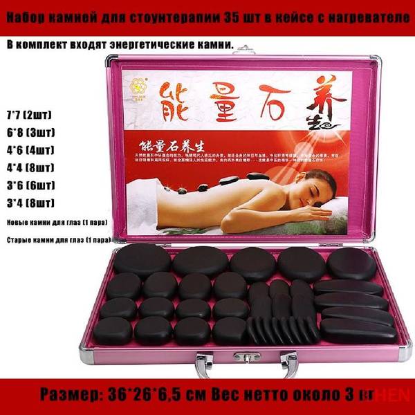 Experience the luxurious smoothness and therapeutic benefits of this comprehensive 35-piece Tian Shan stone therapy set. Includes a heated carrying case for convenient use. Meticulously crafted with advanced 3D-modeling and diamond polishing, the stones offer a range of sizes to address various therapeutic needs. Sizes include: 7x7 (2 pcs), 6x8 (3 pcs), 4x6 (4 pcs), 4x4 (8 pcs), 3x6 (6 pcs), and 3x4 (8 pcs).