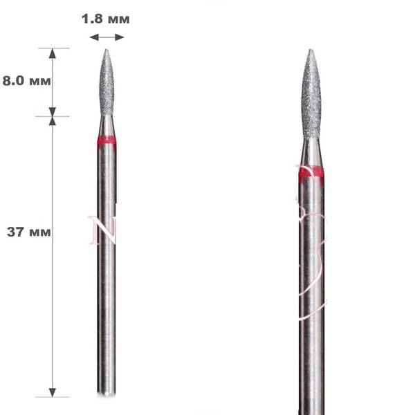 High-quality 1.8mm carbide burs in a flame shape, enhanced with diamond coating for exceptional sharpness. Red band for clear distinction. Specifications: Shank Type 104, Factory Article Number 243, Total Length 4.5cm, Working Surface 8mm. Liquidation sale – limited stock available!