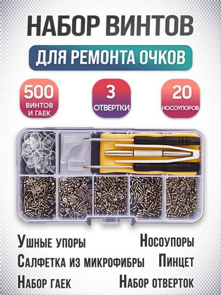 This comprehensive 500-piece eyeglass screw and nut assortment kit is your ultimate solution for repairing and maintaining various eyeglass frames. Crafted from high-quality, corrosion-resistant materials, these screws ensure long-lasting durability and reliable performance. The kit includes a wide range of sizes, guaranteeing you'll find the perfect fit for virtually any frame type. Precision and dependable fastening are crucial for eyewear, and this kit delivers both.