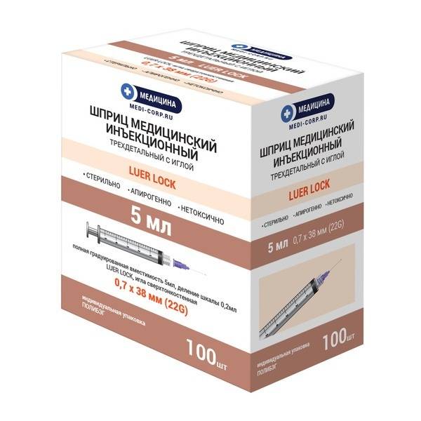 Designed for intravenous injections and fluid aspiration for diagnostic testing, these 5ml syringes feature a 22G (0.7x38mm) ultra-thin-walled needle with a triple-bevel point for atraumatic insertion. The needle is protected by a polypropylene cap.