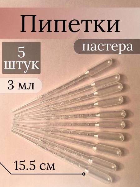 These high-quality, disposable Pasteur pipettes are perfect for a variety of applications, from scientific experiments to arts and crafts. Each pack contains five 3ml pipettes, each measuring 15.5cm in length and featuring a graduated scale (0.5ml increments) for precise liquid measurement and transfer. Made from durable polypropylene, these pipettes are ideal for handling various liquids with accuracy and ease.