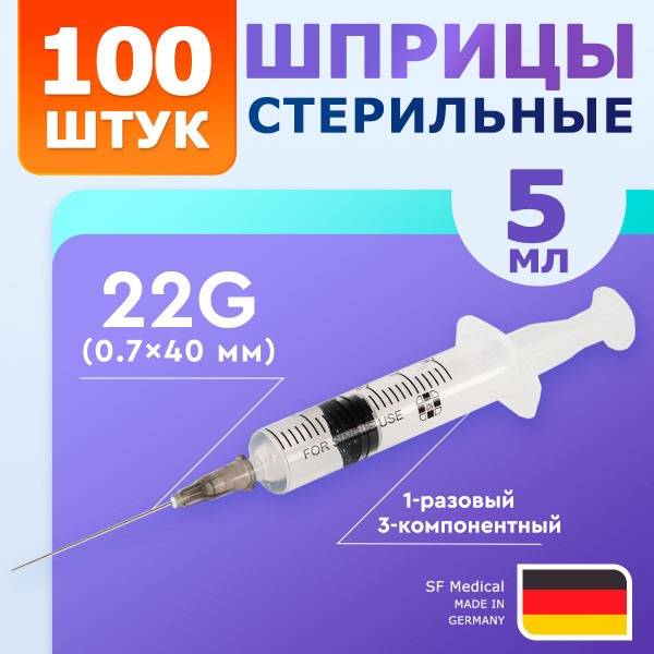 5ml syringes, 100 syringes, 22G needle, 1/2 inch needle, 0.7x40mm needle, SF Medical, three-component syringe, disposable syringes, sterile syringes, medical syringes, painless injections, smooth plunger, accurate dosage, silicone coated, triple bevel needle, german needles, home use syringes, bulk syringes, healthcare supplies, medical supplies, anesthesia syringes, intensive care syringes, pediatric syringes, high-quality syringes, reliable syringes, safe syringes