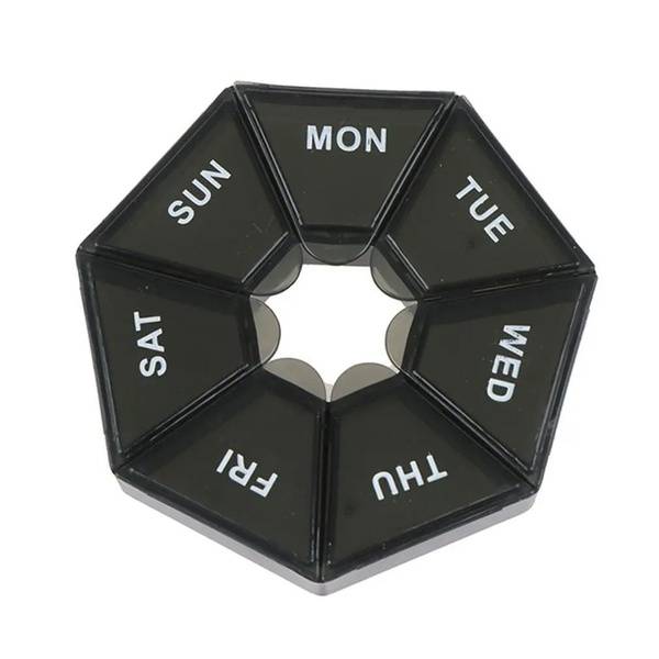 Never miss a dose again! Our 7-day pill organizer is the perfect solution for managing your daily medications or supplements. This sleek and compact case features seven clearly labeled compartments, one for each day of the week, ensuring you stay organized and on track. Made from durable, high-quality plastic, this organizer is built to withstand daily use and the rigors of travel. Its lightweight and portable design makes it ideal for carrying in your purse, bag, or pocket, so you'll always have your medications close at hand. Say goodbye to pill-related stress and hello to peace of mind. Order your 7-day pill organizer today!