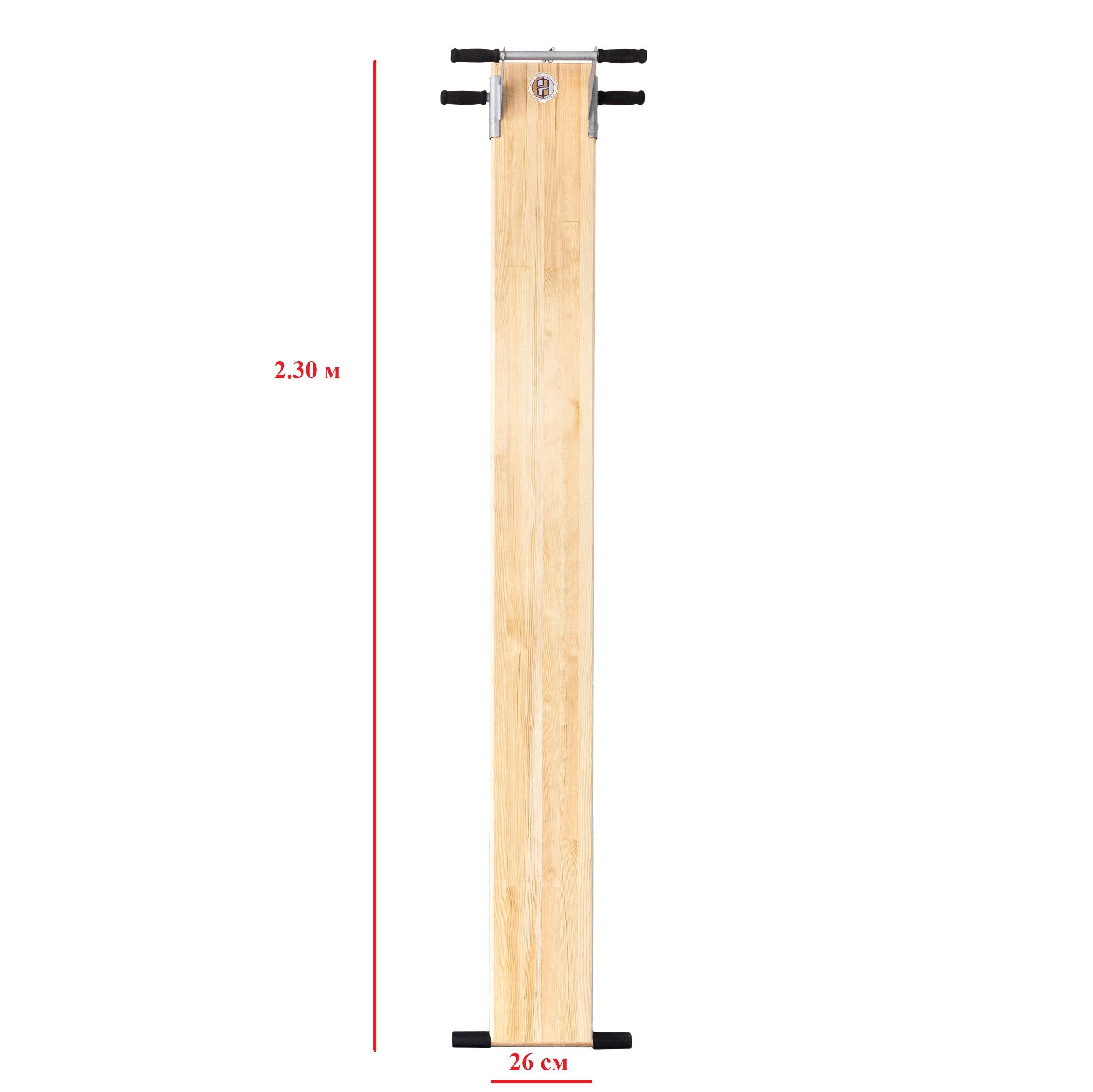 The Evmynov Center Profilaktor Standard is a multi-functional inversion table designed for spinal health and rehabilitation. Constructed from pine wood and metal, it features an adjustable carriage system and a Glisson loop for cervical spine exercises. The 230 cm length accommodates users up to 178 cm tall and 110 kg weight, with customizable angles for inversion therapy and muscle strengthening.
