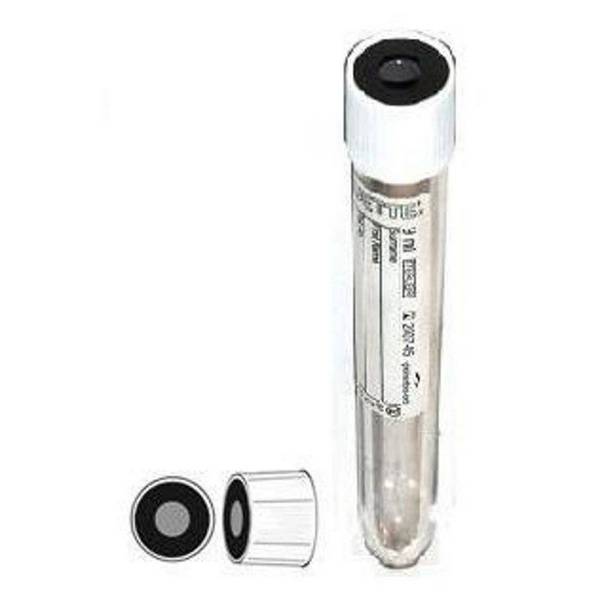 These 9ml sterile vacuum blood collection tubes (VACUETTE 455001) are ideal for collecting cerebrospinal and effusion fluids. Manufactured from high-quality PET plastic, each tube features a rubber stopper and a secure, threaded, ribbed plastic cap for added safety. The tubes are non-additive, ensuring sample integrity. They're clearly labelled with a paper label and come in a convenient 50-pack, supplied in a polystyrene rack and shrink-wrapped for protection. The tubes are color-coded white for easy identification. Perfect for clinical laboratories and medical research facilities.