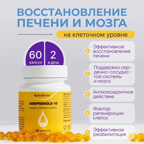Abiprenol 10 is a premium, highly purified natural polyphenol concentrate designed for daily support of liver, brain, and heart health. This comprehensive supplement offers a wide range of benefits, notably its potent hepatoprotective and antidepressant effects. It improves memory, protects against stress, and aids in the treatment and prevention of various pathologies.