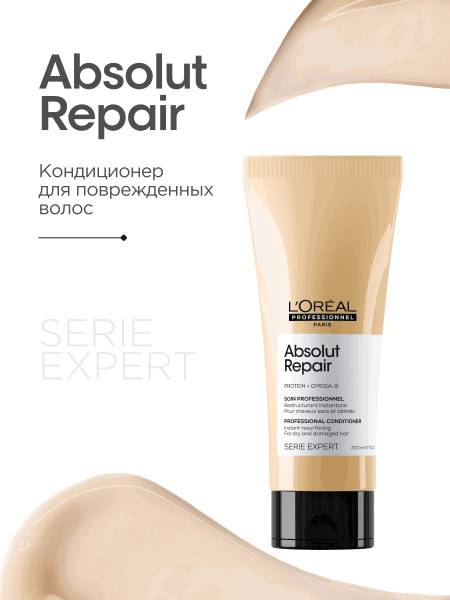 L'Oréal Professionnel, Serie Expert, Absolut Repair, Conditioner, Hair Repair, Damaged Hair, Color Treated Hair, Bleached Hair, Wheat Protein, Golden Quinoa, Hair Conditioner, Hair Care, Professional Hair Care, Hair Mask, Shiny Hair, Smooth Hair, Strong Hair, Hair Treatment, Leave-in Conditioner, 200ml