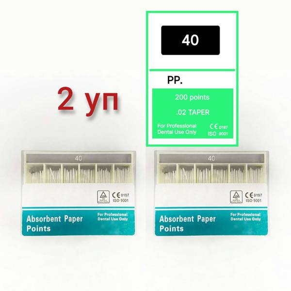 These high-absorption paper points are essential for efficient endodontic procedures. Designed for rapid drying of root canals, they maintain their shape even when fully saturated. This bulk pack contains 240 points (2 boxes of 120) with a 0.02 taper and ISO size 40. The convenient slide-cassette with foam insert prevents point loss and ensures easy handling. Consistent sizing and color-coding simplifies identification and selection. Optimize your root canal preparation workflow with these reliable and efficient paper points.