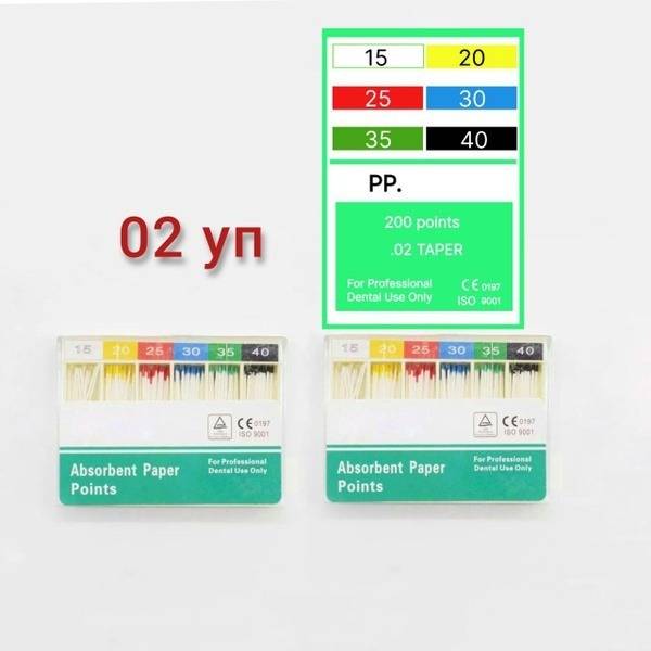 High-absorbency paper points for rapid endodontic canal drying. Maintain their shape even when fully saturated. These ISO-standardized points (sizes 08-50, assortment 15-40) feature a 0.02 taper and come in a convenient slide-case with foam insert to prevent points from falling out. Each package contains 200 points; this listing includes two packages (400 total points). Ideal for efficient root canal preparation and obturation.