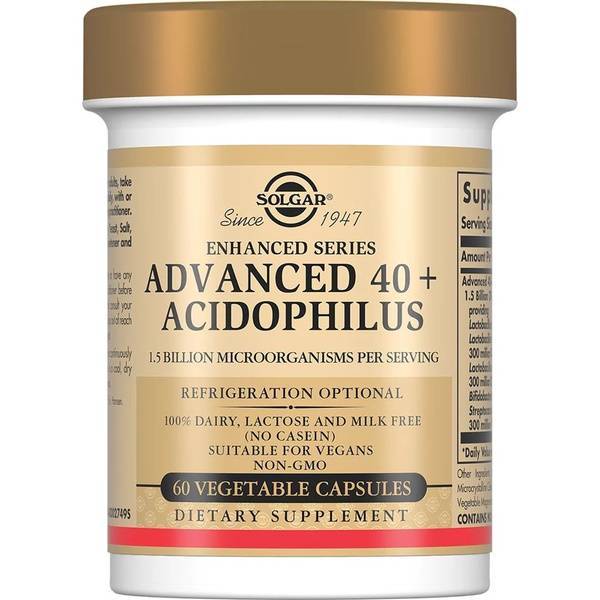 Solgar, Acidophilus 40+, probiotic, probiotics, gut health, digestive health, immunity, adults over 40, 40+, lactose-free probiotics, clinically studied probiotics, patented probiotics, QPS, colony forming units, CFUs, gut microbiome, digestive support, immune support, Solgar probiotics, healthy gut, Lyophilized probiotics, lactose intolerance, gut flora, microbiome balance.