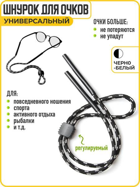 Secure your eyeglasses with this versatile, adjustable eyeglass cord from WiseBuys. Available in classic black and white, ensuring a comfortable and stylish fit for all. One-piece design for effortless use.
