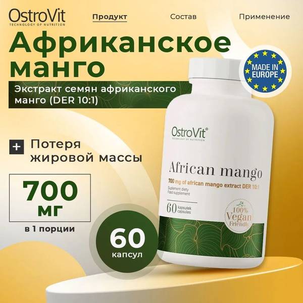African mango, Irvingia gabonensis, weight loss, weight management, cholesterol support, triglyceride management, appetite suppressant, vegan capsules, dietary supplement, HPMC capsules, healthy weight, cardiovascular health, LDL cholesterol, HDL cholesterol, lipolysis, fat burning, OstroVit, VEGE.
