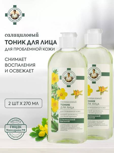 Experience the transformative power of Agaphi's Pharmacy. This dual pack of 270ml Toner bottles provides long-lasting relief and a radiant, healthy glow. Perfect for oily, acne-prone, and combination skin types. This Salicylic Acid Toner utilizes Celandine Extract, White Nettle Extract, and Oak Bark Extract for optimal results. This Problem Skin Toner is a testament to Siberian Herbal Remedies.