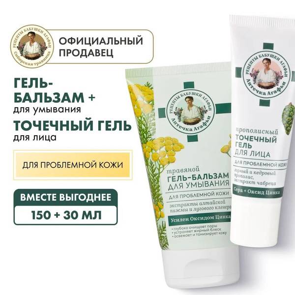 Agafia's Herbals: Cleansing Gel-Balm & Propolis Gel for Problem Skin (150ml + 30ml)