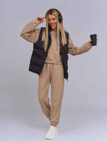 Experience ultimate comfort and style with the AGB Activestyle women's tracksuit. Crafted from a luxuriously soft and durable cotton-polyester blend (90% cotton, 10% polyester), this tracksuit offers effortless wearability. The oversized/relaxed fit allows for unrestricted movement, perfect for workouts or casual outings. The flattering top accentuates the waistline, while the elastic waistband on the pants ensures a perfect fit. Available in a versatile dark beige, this stylish tracksuit transitions seamlessly from gym to street. Durable and comfortable, it's ideal for spring, summer, and fall, making it a wardrobe essential for any active woman.