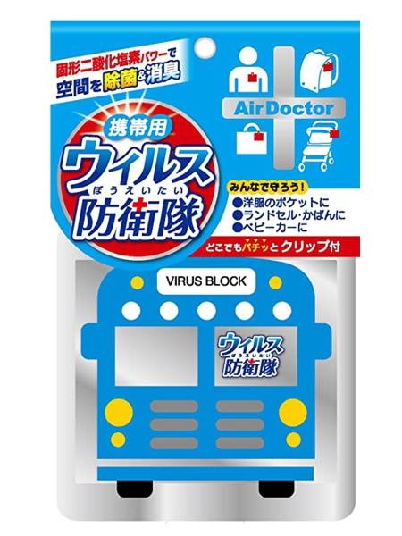 Air Doctor Virus Blocker, virus blocker, portable virus protection, chlorine dioxide, antiviral, antibacterial, allergen protection, mold spore protection, immune support, Japan, safe for children, elderly care, public health, infection prevention, influenza prevention, ClO2, natural immunity, deodorizer, bus, public transportation, school, hospital, healthcare worker