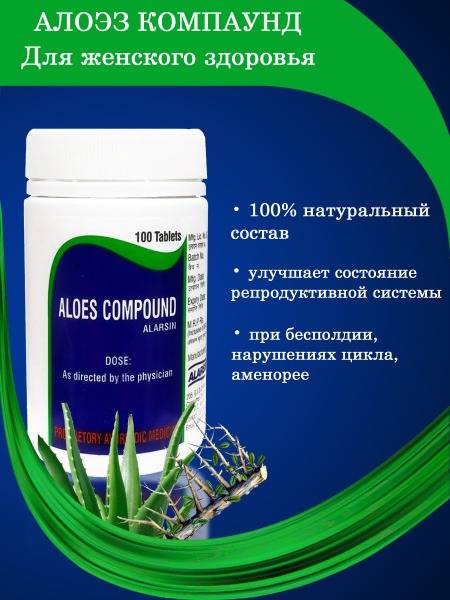 Alarsin Aloes Compound effectively addresses female infertility, irregular or scanty menstruation, amenorrhea, dysmenorrhea, and delayed menarche. This supplement enhances fertility, restores ovulatory cycles, improves reproductive health after hormonal treatments, and promotes overall women's health.