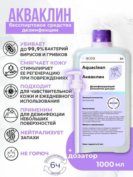 Aquaklin Alcohol-Free Hand and Surface Antiseptic offers superior germ protection without the drying effects of alcohol. This unique 1-liter formula delivers rapid, effective disinfection against a broad spectrum of bacteria, viruses, and fungi. Its potent virucidal action ensures reliable neutralization of harmful microorganisms, providing prolonged protection for your hands and various surfaces.