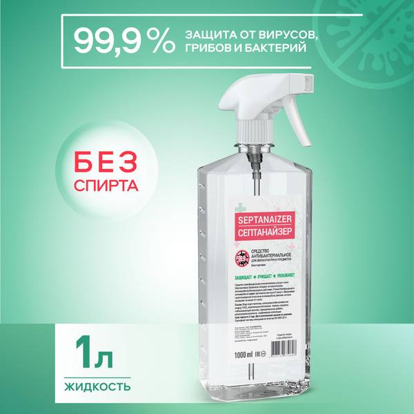 Keywords: alcohol-free antiseptic, hand sanitizer, surface disinfectant, benzalkonium chloride, BAC, antiseptic spray, virucidal, antibacterial, antifungal, antiprotozoal, glycerin, alcohol-free hand sanitizer, sensitive skin antiseptic, medical antiseptic, surgical antiseptic, cosmetology antiseptic, 1 liter antiseptic, trigger spray, express disinfection, long-lasting protection.