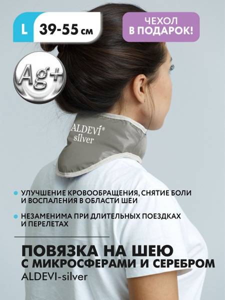 The ALDEVI-silver neck wrap utilizes a unique blend of three types of microspheres (sodium borosilicate, sodium-calcium borosilicate, and potassium-sodium with an organosilicon coating) to gently deliver infrared heat and improve microcirculation. The addition of 98% pure silver powder enhances the antiseptic effect, promotes nerve system regeneration, and helps reduce anxiety and irritability.