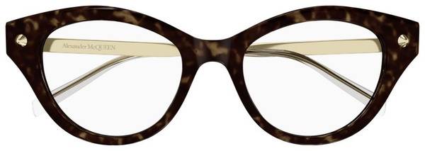 The rich brown color of these Alexander McQueen frames appeals to those who appreciate natural tones and refined sophistication. These brown eyeglasses lend a touch of softness and depth, creating a natural, elegant, and timeless style. Perfect for lovers of earthy palettes and creative individuals who value classic design with a modern twist.