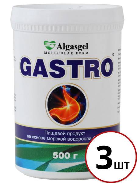 Keywords: Algasgel Gastro, seaweed gel, digestive health, gut health, H. pylori, gastritis, pancreatitis, hepatitis, colitis, reflux esophagitis, peptic ulcers, Crohn's disease, dysbiosis, irritable bowel syndrome (IBS), constipation, diarrhea, bloating, stomach pain, intestinal pain, inflammation, gut microbiota, fucoidans, fucoxanthin, alginates, flavonoids, B vitamins, organic iodine, anti-inflammatory, healing, regeneration, natural remedy, 3-pack.