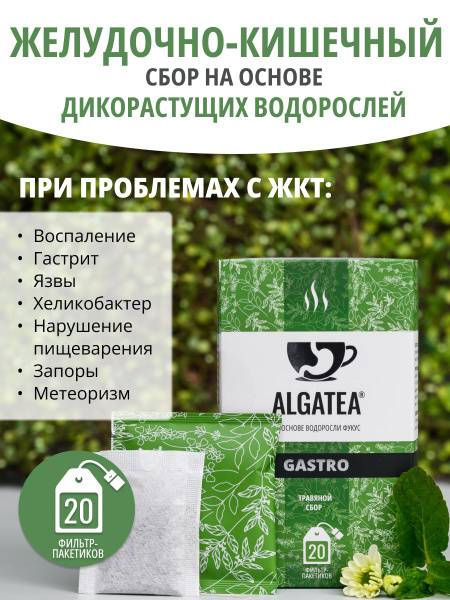 Keywords: Algenic Gastro, herbal blend, stomach problems, digestive issues, gastritis, ulcers, constipation, helicobacter pylori, H. pylori, IBS, irritable bowel syndrome, acid reflux, esophagitis, duodenitis, colitis, pancreatitis, hepatitis, fucoidan, chaga, chamomile, sage, peppermint, anti-inflammatory, antispasmodic, regeneration, detox, bile production, gut health, digestive health, natural remedy, herbal remedy, tea, supplement.