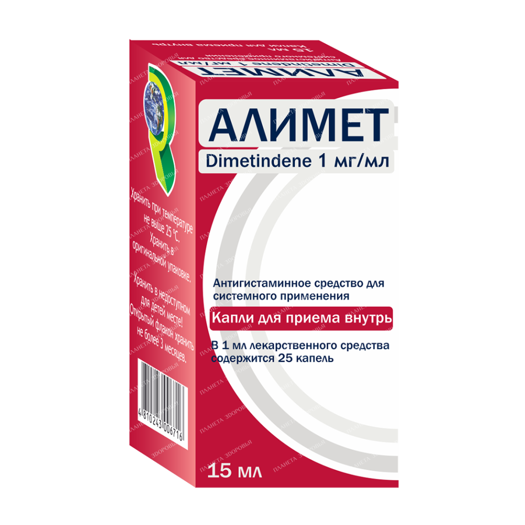 Alimet Drops contain the active ingredient dimethindene maleate, a potent antihistamine that works by blocking histamine receptors. This helps reduce the symptoms associated with allergic reactions, such as itching, sneezing, and swelling.