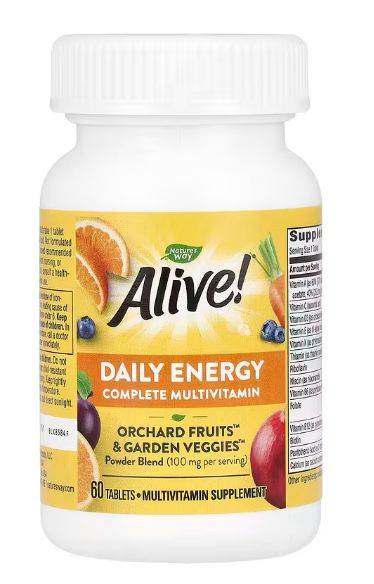 Nature's Way Alive!, Daily Energy, Iron, Multivitamin, 60 Tablets, Energy Boost, Fatigue Relief, Immune Support, Blood Health, Anemia Prevention, Bone Health, Heart Health, Antioxidant, Vitamin B, Vitamin C, Vitamin D, Zinc, Selenium, Superfoods, Vegetarian, Vegan, Active Lifestyle, Chronic Fatigue, Stress Relief, Cognitive Function, Multivitamin with Iron, Women's Health