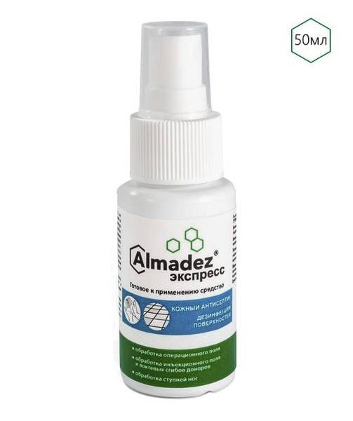 "description": "AlmaDez Express is a fast-acting, 50ml antiseptic spray for skin disinfection. Effective against a wide range of germs, it provides convenient and reliable protection for everyday use. Ideal for on-the-go hygiene.",