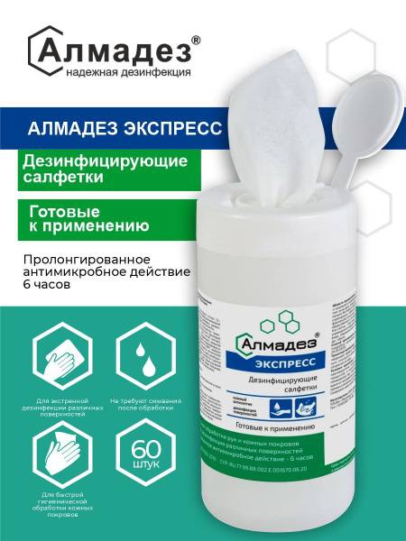 Keywords: AlmaDez Express, disinfecting wipes, antimicrobial wipes, hand wipes, surface disinfectant, hygiene wipes, bacteria, virus, fungi, Legionella, plague, cholera, tularemia, skin disinfectant, eco-friendly wipes, non-woven wipes, 60 count wipes, ready-to-use wipes, no rinse, long-lasting protection, biofilm removal, moisturizing wipes
