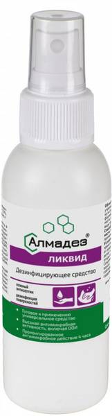 Description: AlmaDez-Liquid is a ready-to-use, broad-spectrum disinfectant spray for skin and surface disinfection. Effective against coronaviruses, bacteria (including E. coli, S. aureus, and Mycobacterium terrae), fungi (including Candida and Trichophyton), and viruses (including influenza, herpes, HIV, and Hepatitis A, B, and C). Contains 73% isopropyl alcohol, 0.1% lactic acid, and 0.1% 2-phenoxyethanol, along with skin-conditioning agents. Provides long-lasting antimicrobial action for up to 4 hours. 100ml bottle. 6-year shelf life.