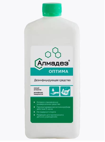 Furthermore, Almadez-Optima provides powerful fungicidal action against Candida species, Trichophyton dermatophytes, and mold fungi, including Aspergillus brasiliensis and Mucor spp. It is also effective against highly dangerous pathogens such as plague, cholera, and tularemia.