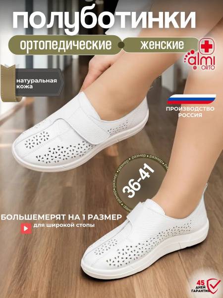 Discover ultimate comfort and support with Alm-Orto's premium orthopedic half-boots. Crafted from genuine white leather with elegant perforation, these shoes are designed for exceptional comfort and style. Perfect for spring, autumn, and even cooler summer days, these classic half-boots offer a timeless appeal that's currently at the height of fashion.