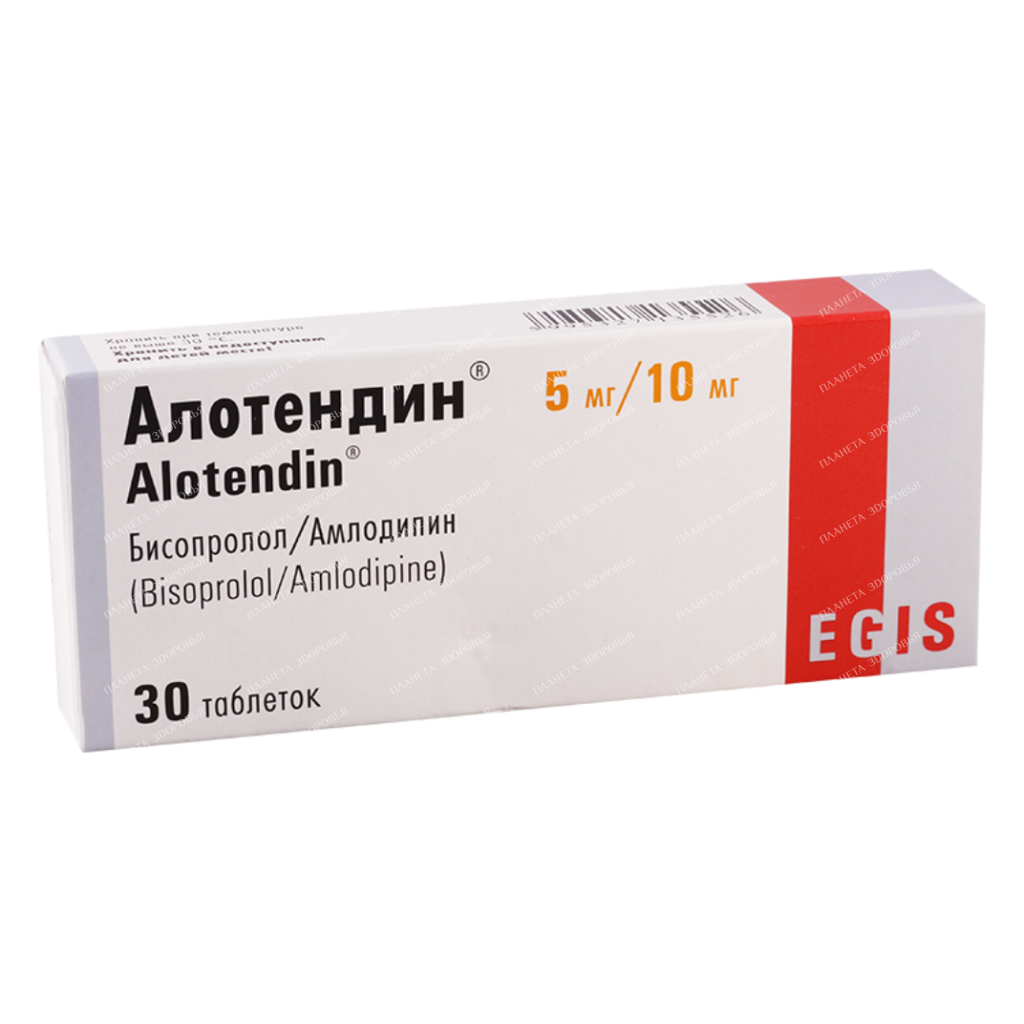 Alotendin tablets are a combination medication for treating high blood pressure (arterial hypertension). It combines amlodipine, a calcium channel blocker, and bisoprolol, a beta-blocker, to work synergistically and lower your blood pressure effectively.