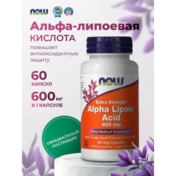 Experience the power of Now Foods Alpha Lipoic Acid 600mg, a high-potency supplement designed to support overall well-being. Each bottle contains 60 capsules, providing a full month's supply of this essential antioxidant.