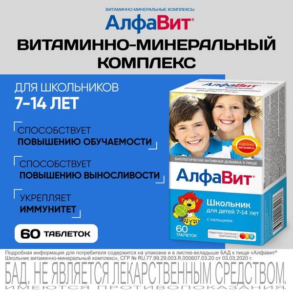 Alphabet Schoolchild contains vitamins and minerals tailored to the developmental needs of children aged 7-14. Regular intake supports healthy growth, learning, knowledge retention, and overall development. It enhances performance and aids adaptation to new social environments. For children actively involved in sports, Alphabet Schoolchild helps manage the physical demands of extracurricular activities.