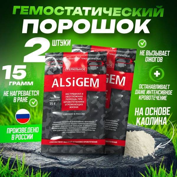 AlSiGEM, hemostatic granules, kaolin, bleeding control, wound healing, first aid, emergency medicine, hemostasis, arteriovenous bleeding, hypoallergenic, natural ingredients, military first aid, civilian first aid, trauma care, stop bleeding, quick clotting, granules for bleeding, kaolin powder, antibacterial hemostatic granules.